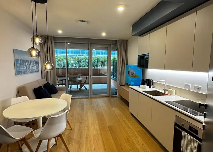 Waterfront Interno 3设有小厨房和配写字台,休息区 和电视的客房. 公寓距离費拉里站地铁站有900米.